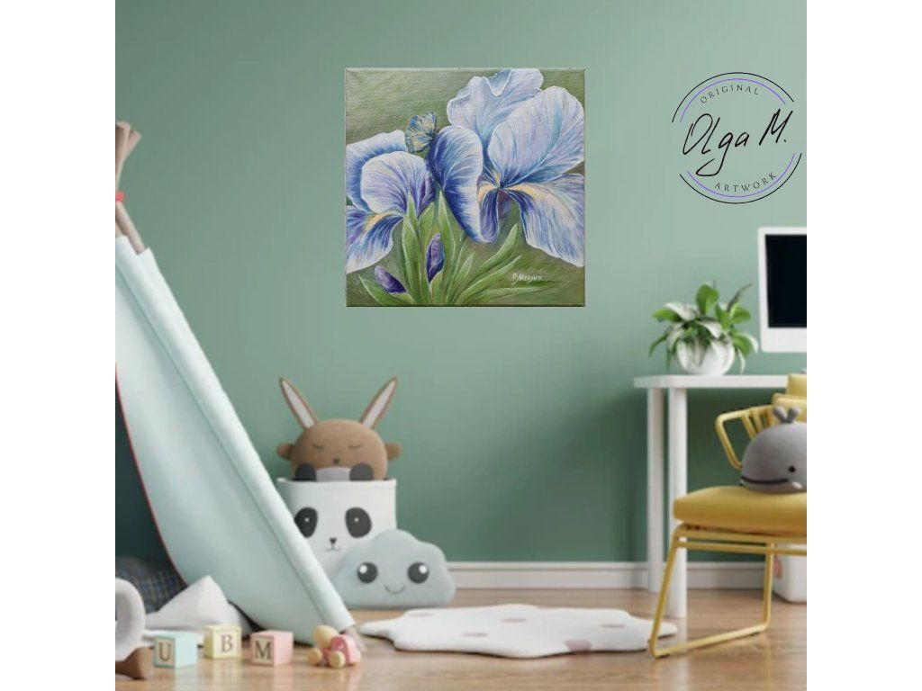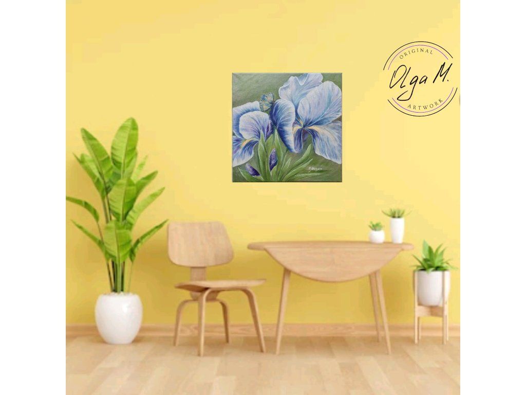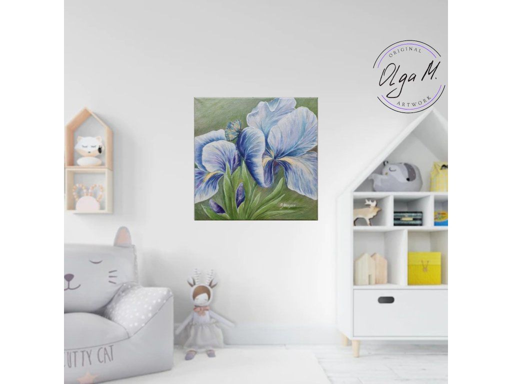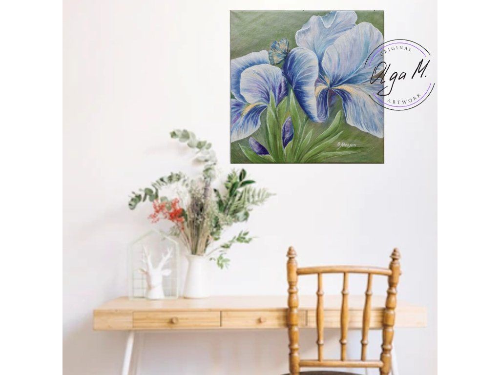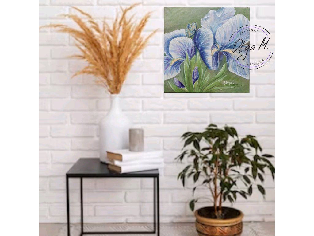 #obraz #umeni #akrilovyobraz #kvetiny #kosatce #motyl #motylek #priroda #leto #iris #art #originalartwork #acrylicpainting #summer #butterfly #greenandblue #painting #flowers