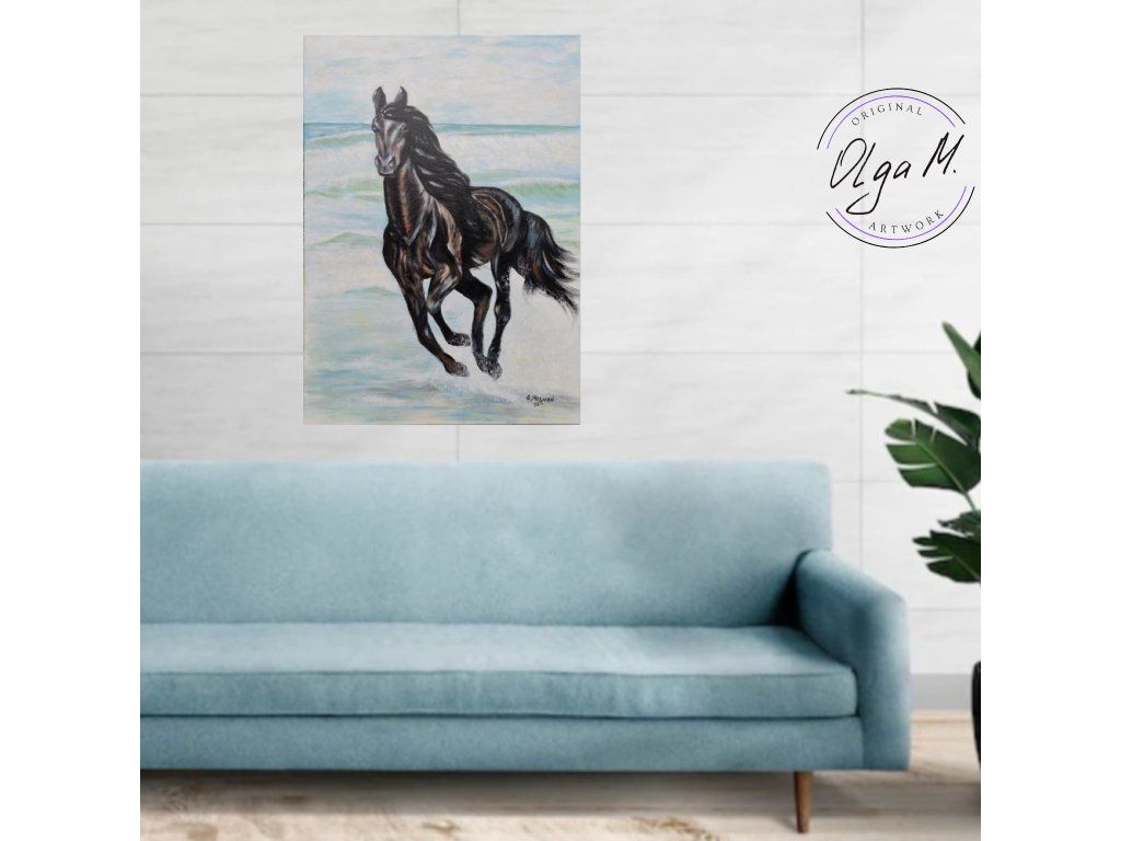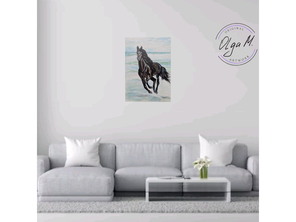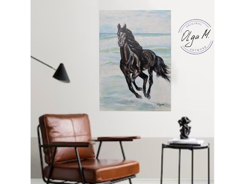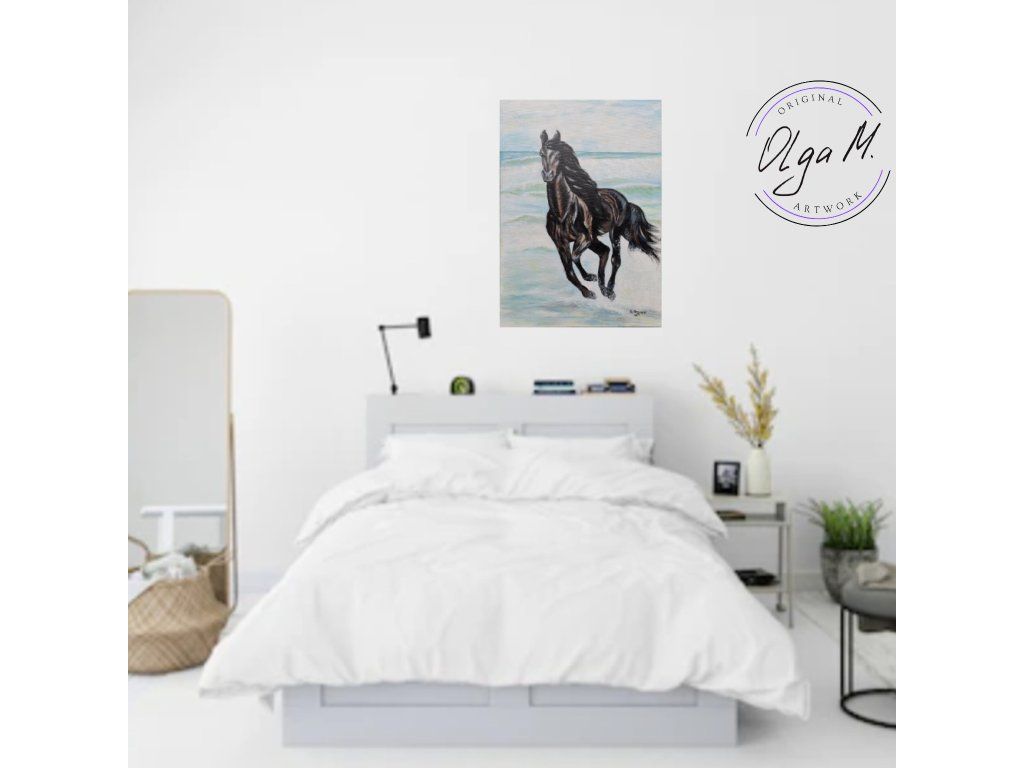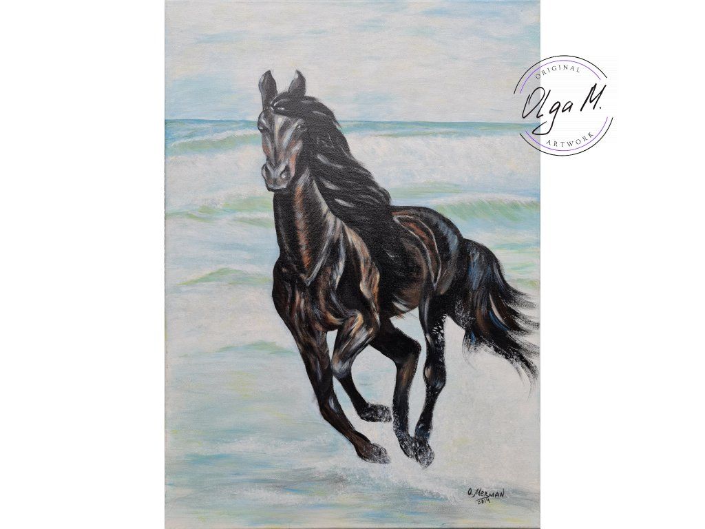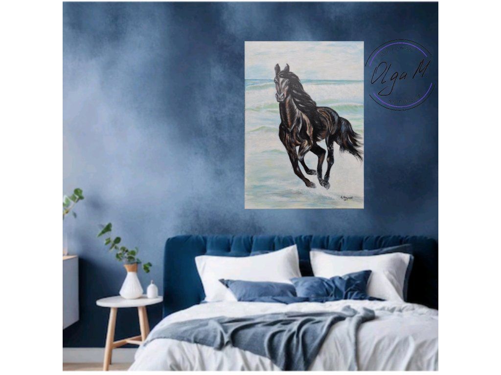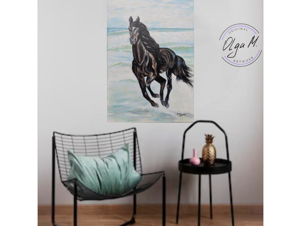 #obraz #umeni #kun #more #cernykun #originalartwork #acrylicpainting #atr #horse #blackhorse #sea #blue