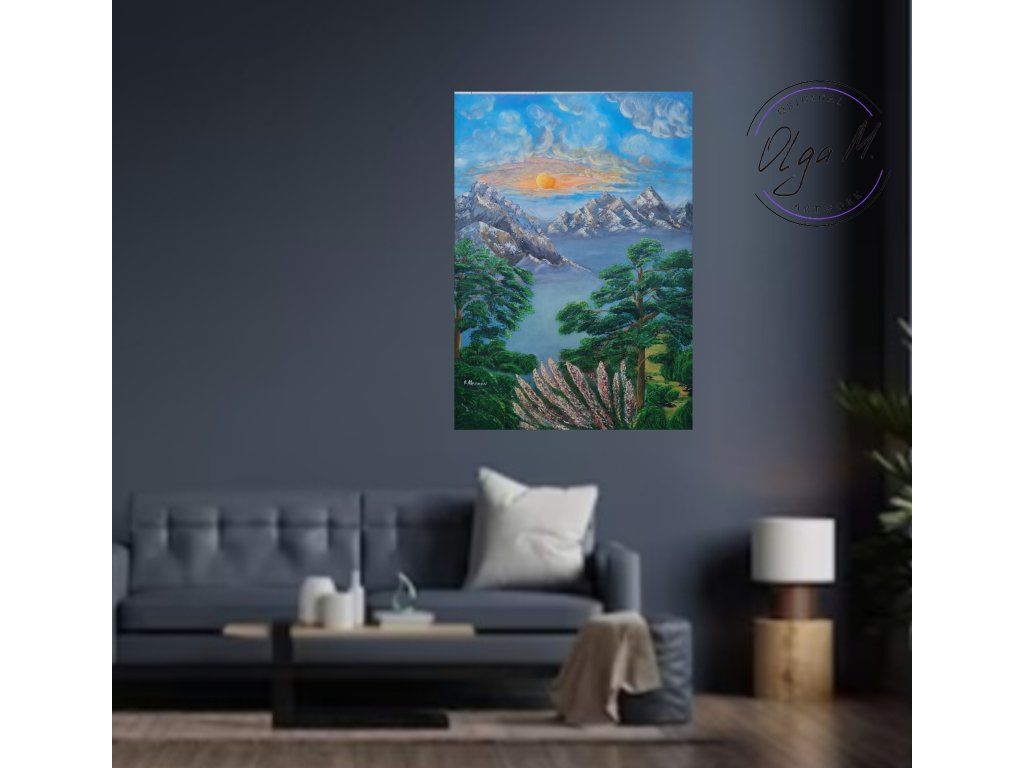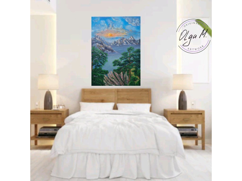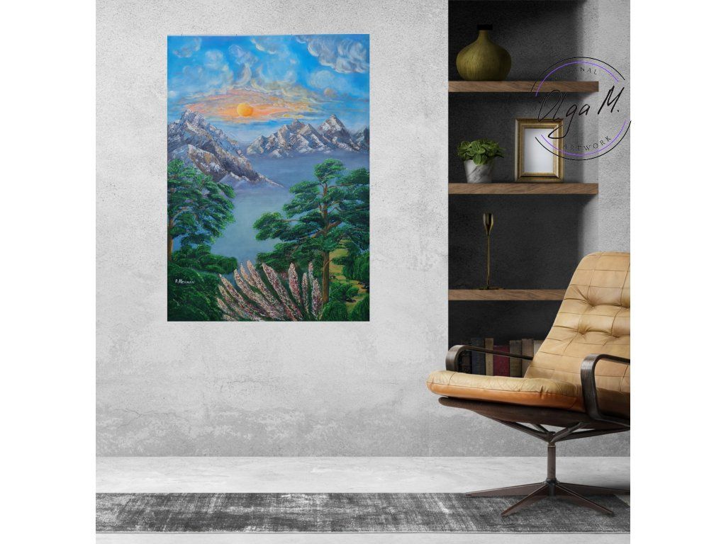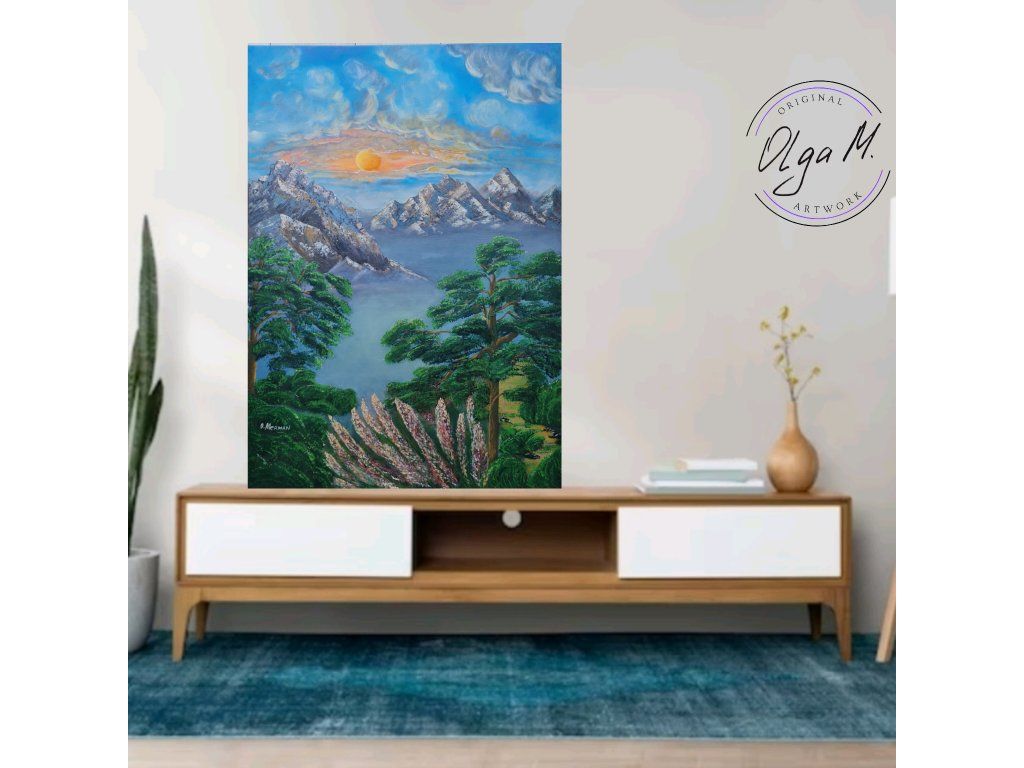 #akrylovyobraz #obraz #umeni #malba #velkyobraz #zemesnu #hory #priroda #stromy #slunce #art #originalartwork #acrylicpainting #painting #mountains #tree #sun #nature #landscape #bigpainting #bigpicture #largepainting