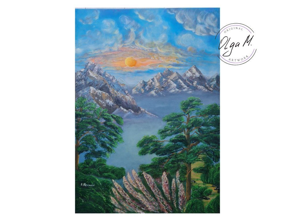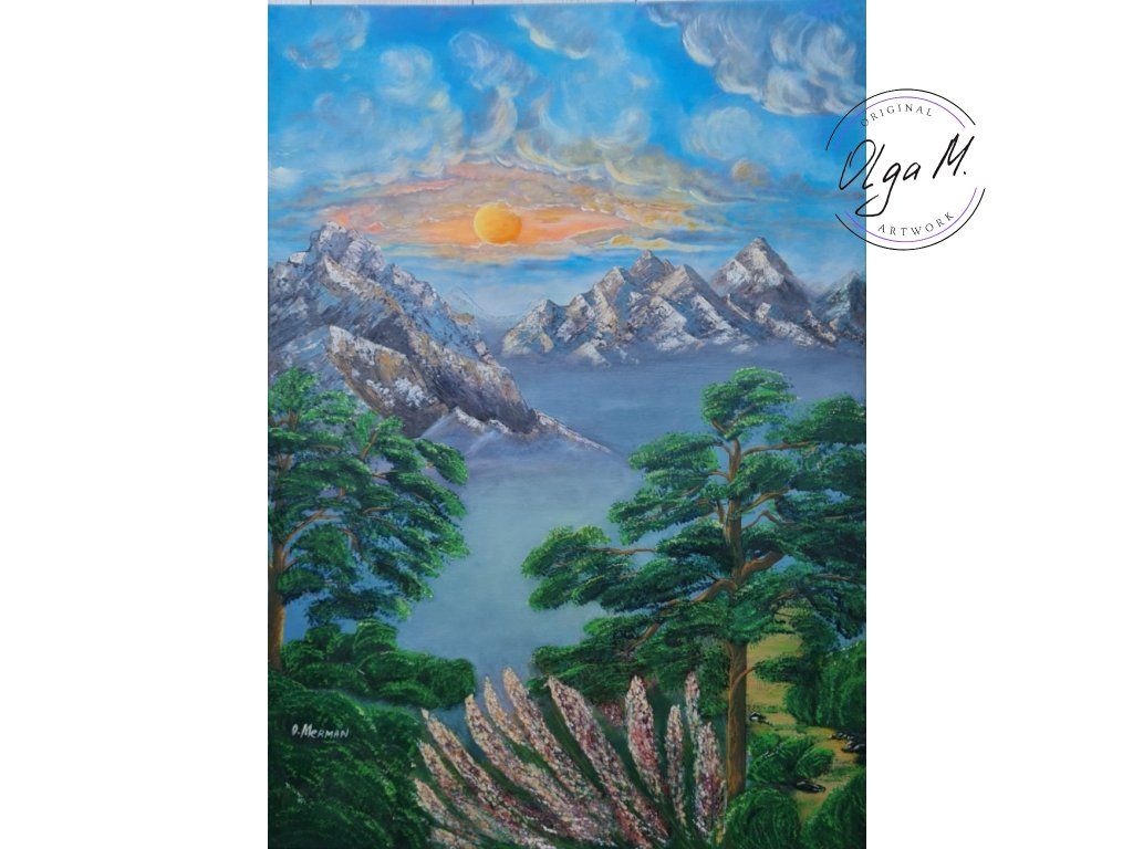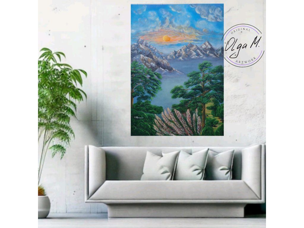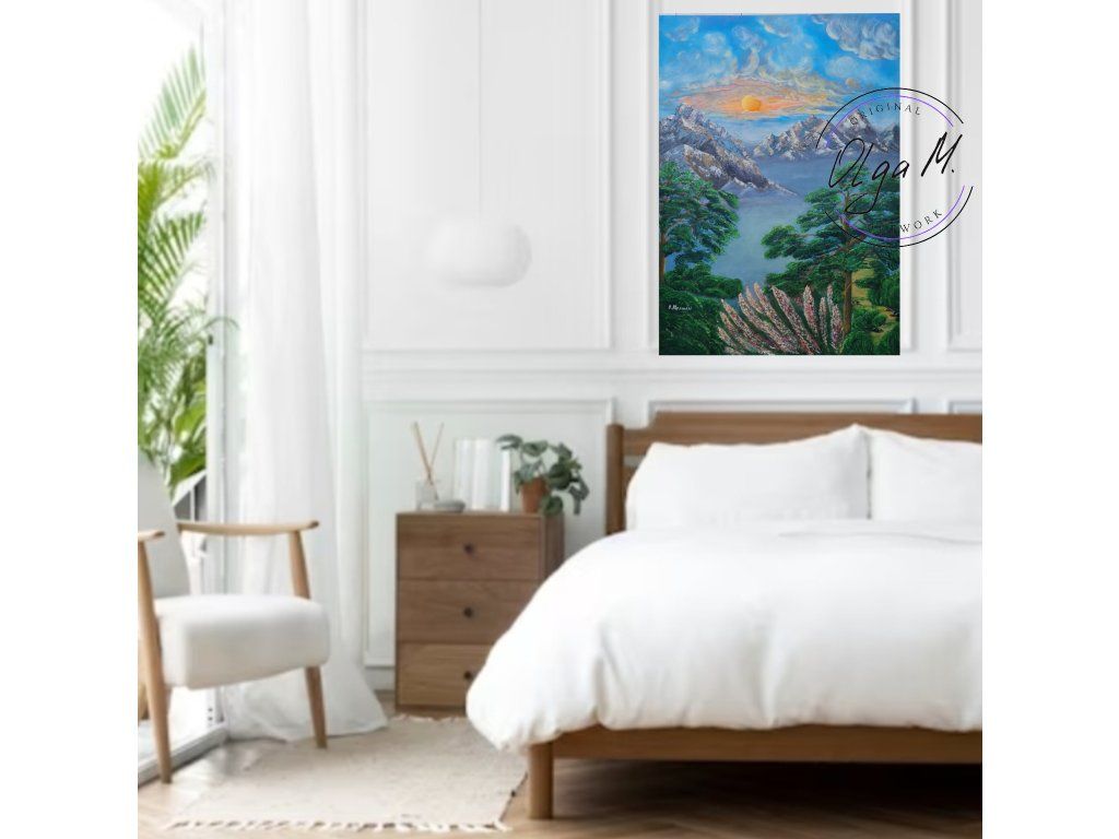 #akrylovyobraz #obraz #umeni #malba #velkyobraz #zemesnu #hory #priroda #stromy #slunce #art #originalartwork #acrylicpainting #painting #mountains #tree #sun #nature #landscape #bigpainting #bigpicture #largepainting